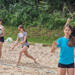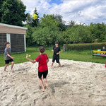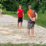 Footvolley ist eine Kombination aus Fußball und Beachvolleyball. Mit Füßen, Oberschenkeln, Brust, Schulter und Kopf darf der Ball berührt werden – nicht mit den Händen oder Armen. Jede Mannschaft